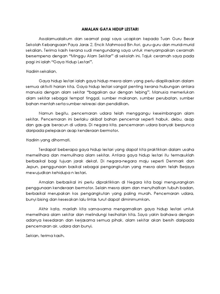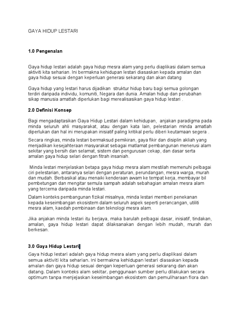 Ini hanya dapat dicapai melalui perubahan gaya hidup. 2 0 definisi konsep bagi mengadaptasikan gaya hidup lestari dalam kehidupan anjakan paradigma pada minda seluruh ahli masyarakat atau dengan kata lain pelestarian minda amatlah diperlukan dan hal ini merupakan inisiatif paling kritikal perlu diberi keutamaan segera. Amalan gaya hidup sihat juga meliputi aktiviti senaman. Peluh yang keluar ketika bersenam dapat membuang sisa toksik dalam badan seseorang.