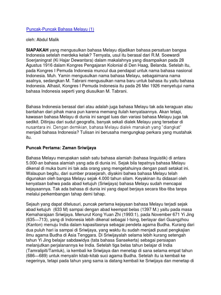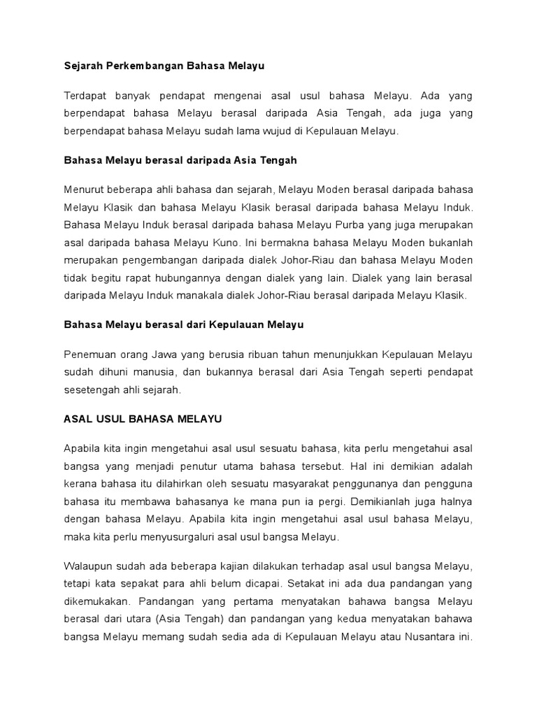 1 untuk mengetahui tempat asal bahasa kajian tempat asal usul bangsa melayu yang menuturkan bahasa ter sebut perlu dilakukan. Menurut teori j crawfurd lagi beliau menyimpulkan bahawa bahasa jawa merupakan asal dan asas pada kemunculan bahasa melayu di nusantara. 2 terdapat dua hipotesis tentang asal usul bangsa melayu iaitu. Bahasa melayu juga serumpun dengan bahasa kemboja dan orang kemboja dikatakan berasal dari yunan dan hal ini telah menguatkan lagi fakta mengenai asal usul melayu deutro yang berasal dari yunan.