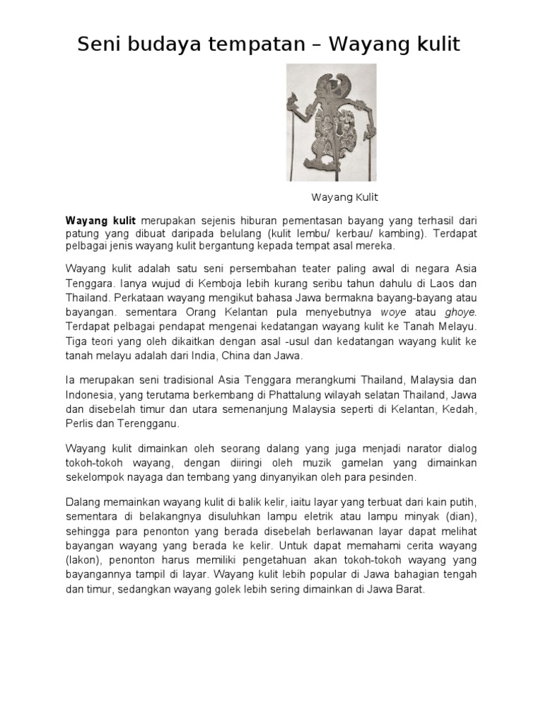Wayang purwa kemudian dikembangkan oleh raden panji di jenggala ditahun 1223 m. In a wayang kulit performance the puppet figures are rear projected on a taut linen screen with a coconut oil or electric light. Masyarakat melayu patani di selatan thailand pula menyebut kesenian ini sebagai wayang kelantan atau wayang siam kelantan kerana kesenian ini telah dibawa masuk ke negeri patani dari kelantan. Pendapat ini selain dianut dan dikemukakan oleh para peneliti dan ahli ahli bangsa indonesia juga merupakan hasil penelitian sarjana sarjana barat.