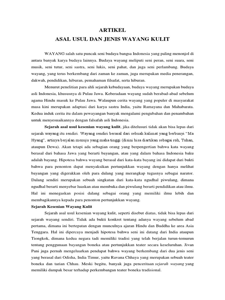 Menurut hasil survey yang kami lakukan dalam buku sejarah tidak ada informasi definitif yang menjelaskan asal usul wayang kulit ini namun dalam sejarah perkembangannya asal usul wayang kulit ini adalah sejak 1500 sm. Ada yang mengatakan bahwa wayang kulit ada sebelum abad pertama yang bertepatan dengan munculnya ajaran hindu dan budha ke area asia tenggara. Wayang kulit is a traditional form of puppet shadow play originally found in the cultures of java bali and lombok in indonesia. Asal usul wayang wayang kulit wikipedia dilansir jadiberita dari berbagai sumber ditinjau dari sejarah yang ada asal usul wayang dianggap telah hadir semenjak 1500 tahun sebelum masehi.