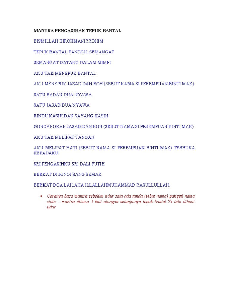 Ayat pengasih doa pengasih tepuk bantal. Mantra ilmu pengasihan tepuk bantal di sebelum tidur mantra tersebut di baca sebanyak 3 kali lalu setelah itu bantal di tepuk sebanyak 7x lalu kita gunakan untuk tidur. Padahal bukan seluruhnya seperti itu. Ilmu pengasih tepuk bantal menjadi rebutan. Disini yang terpenting adalah saling berbagi pengetahuan bersama mengenai amalan tersebut dan semoga dapat membawa kebaikan untuk kita bersama tanpa memberikan kesan negatif yang bermakna.
