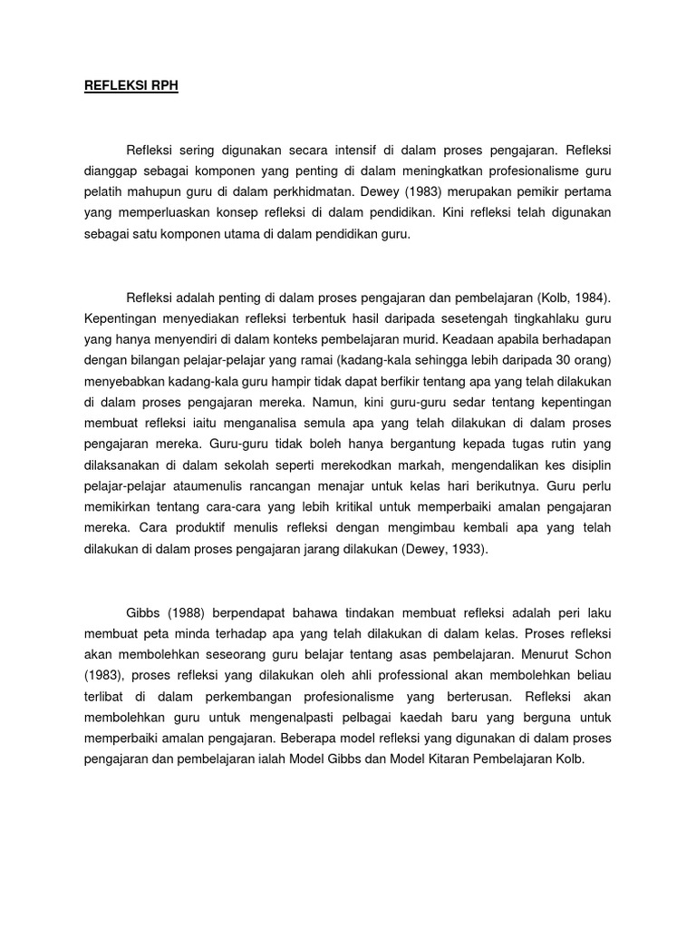 Bahasa melayu contoh refleksi rph. Contoh ayat ayat refleksi rph berikut saya kongsikan antara refleksi yang boleh kita jadikan idea semasa mengarang refleksi bagi setiap sesi pengajaran dan pembelajaran. Contoh rph dan refleksi. 1 jam kehadiran murid. Tentang pelajaran dengan bersoal jawab dengan murid hasil kerja murid yang menarik dipamerkan di hadapan kelas sebagai contoh kepada murid lain ia juga sebagai satu langkah peneguhan positif kepada murid.