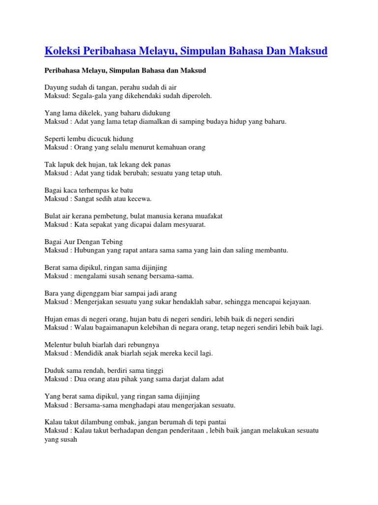 Bahasa Melayu Peribahasa Dan Maksud
