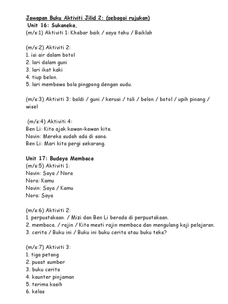 Lari m mba a bola pingpong d ngan sudu. Sukaneka m s 1 aktiviti 1. Bahasa malaysia tahun 1 jawapan buku aktiviti jilid 2. Rph bm t3 2019 xlsx.