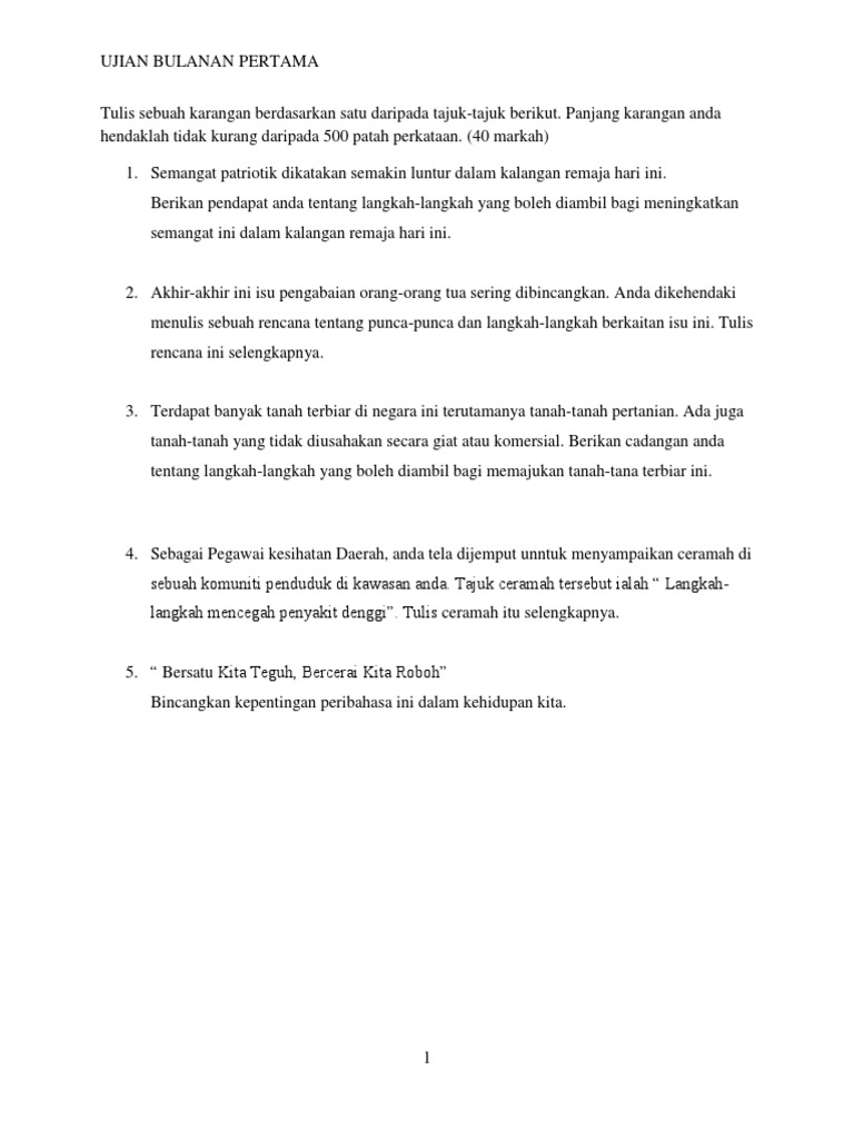Posted by bahasaku indah at 12 45 ptg. Sekiranya kita bersatu dan berkerjasama maka kita dapat berjaya atau menang. Bersatu kita teguh bercerai kita roboh yang berat sama dipikul yang ringan dijinjing sama. Jika masyarakat berpecah belah dan bercerai berai sudah pasti berbagai bagai masalah negara akan timbul seperti kes jenayah pengangguran kemiskinan rusuhan kaum dan lain lain.