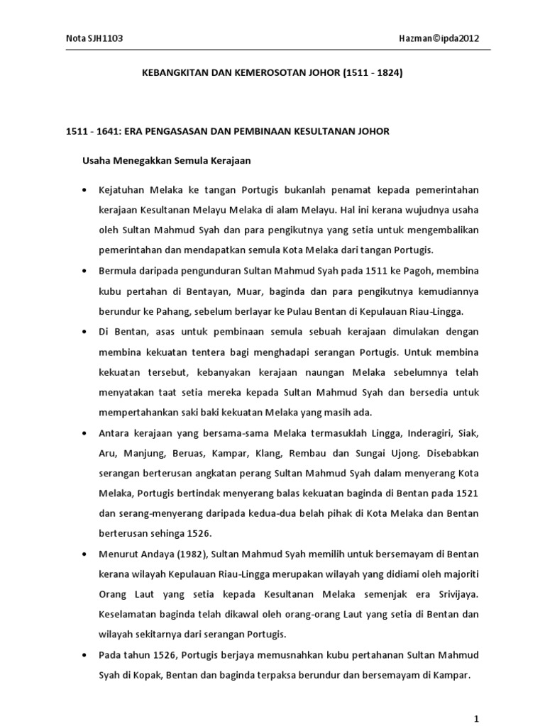 Pada tahun 1511 melaka dikuasai oleh pihak portugis dan sultan mahmud shah sultan melaka ketika. Jambi tewas tunduk di bawah kuasa kesultanan johor riau yang berpusat di riau. Strategi kesultanan johor riau menghadapi cabaran draft. Kesultanan johor yang terkadang disebut juga sebagai johor riau atau johor riau lingga adalah kerajaan yang didirikan pada tahun 1528 oleh sultan alauddin riayat syah putra sultan terakhir melaka mahmud syah.
