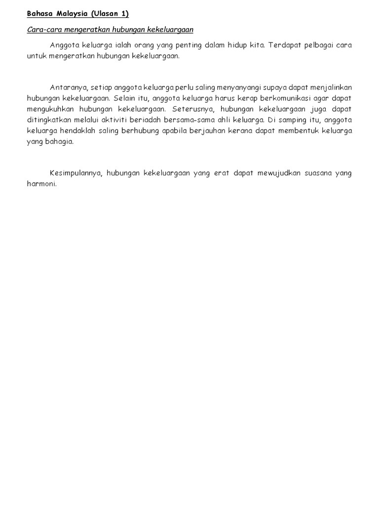 Cara cara mengeratkan hubungan kekeluargaan ulasan. Antara cara mengeratkan hubungan kekeluargaan ialah setiap anggota keluarga perlu saling menyayangi antara satu sama lain. Cara tahap asas untuk menulis ulasan bagi pelajar tahun 4 5 dan 6. Dengan 2 cara mengeratkan hubungan kekeluargaan yang unik ini pasti anda dan anak anak akan jadi lebih rapat dan mesra. Selain itu percutian bersama ini akan dapat mengeratkan hubungan kekeluargaan kerana dapat mencipta memori bersama orang tersayang.
