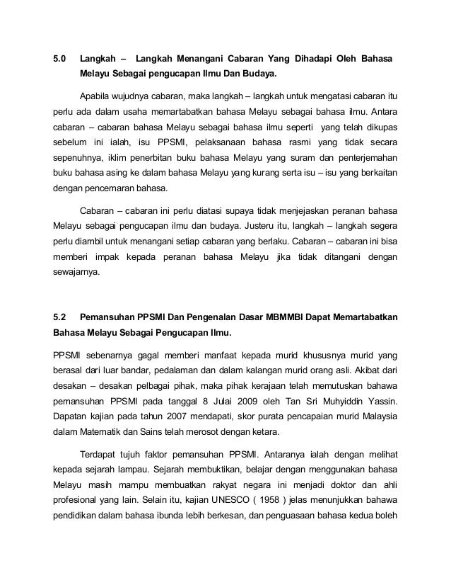 Pelbagai polemik telah dibangkitkan sejak akhir akhir ini bagi membicarakan identiti bahasa malaysia sebagai bahasa kebangsaan bagi sebuah rumpun bernama malaysia. Kampus bahasa antarabangsa 59200 lembah pantai kuala lumpur. Program pensiswazahan guru sekolah rendah matematik ambilan november 2008 semester 8 tugasan peranan yang boleh dimainkan untuk memartabatkan profesyenkeguruan ke arah menginovasikan kualiti pendidikan untuk menjayakan wawasan pendidikan negara edu 3109 guru dan cabaran semasanama. Kementerian pendidikan malaysia 1 dasar memartabatkan bahasa malaysia memperkukuh bahasa inggeris mbmmbi pengenalan mesyuarat jemaah menteri pada 8 julai 2009 telah memansuhkan pelaksanaan dasar pengajaran dan pembelajaran sains dan matematik dalam bahasa inggeris ppsmi di sekolah sekolah iaitu tahun 1 hingga.