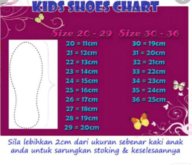 Monday february 23 2015. Bagi memastikan keselesaan anak anda sila tambahkan 1 cm kepada saiz asal tapak kaki anak anda. Tapi saiz die maybe slightly different dari saiz biase yang anda pakai sebab bukan cuba depan mata.