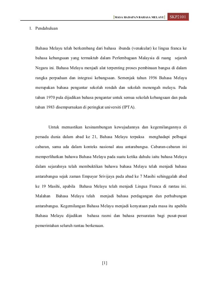 Status atau kedudukan bahasa melayu sebagai bahasa pembentukan tamadun bangsa kini makin tercabar di negara kita kerana sikap sesetengah pihak yang memandang remeh terhadap kedudukan bahasa melayu sebagai bahasa pengantar sekali gus meminggirkan peranan bahasa melayu sebagai bahasa kebangsaan dalam konteks negara bangsa.