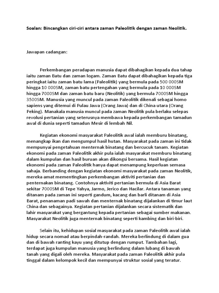 Ciri atau karakteristik jaman neolitikum. Mereka sudah memulai kehidupan dengan menetap di suatu tempat serta. Selama zaman neolitik orang mulai menanam tanaman yang memungkinkan mereka untuk menetap dan tinggal di satu tempat. Ciri ciri zaman neolitik kegiatan dan peralatan kepercayaan lokasi di malaysia gua cha kelantan bukit tengkorak sabah ciri ciri penempatan animisme mencipta peralatan tembikar seperti periuk belanga bercucuk tanam menangkap ikan dan menternak haiwan berdagang secara tukar.