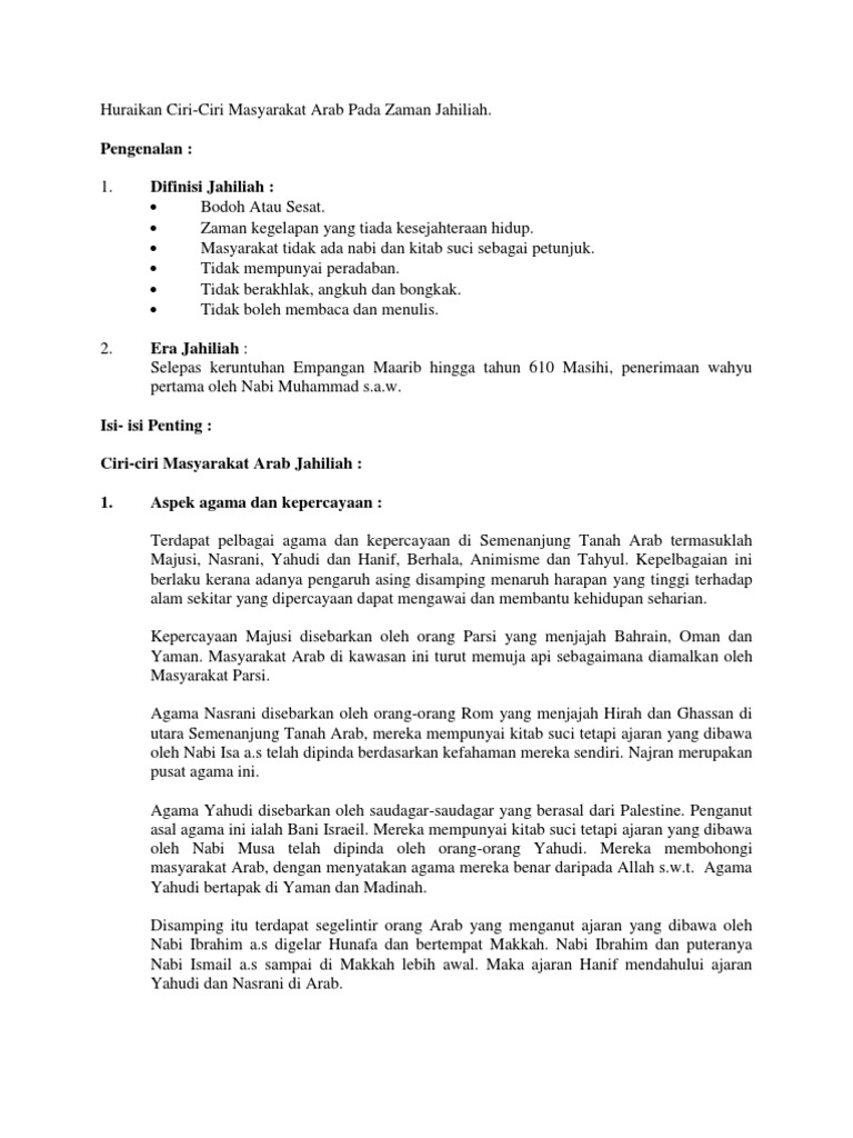 Tidak boleh membaca dan menulis. Ciri ciri masyarakat arab jahiliah 7 isi x 3 markah 1. Tidak boleh membaca dan. Dengan itu ciri ciri kejahilan sangat ketara di kalangan mereka.