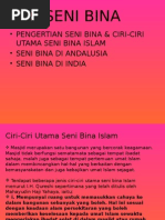Perkembagan tamadun islam tidak dapat lari daripada keagungan seninya termasuklah seni ukiran khat bina dan sebagainya. Menara masjid cordova menjulang 36 meter dan mempunyai dua tangga untuk naik dan turun. Ciri ciri seni bina islam titus burckhardt berpendapat bahawa luahan perasaan keamanan ketenangan dan keheningan merupakan ciri ciri tamadun islam seni bina islam sememangnya mempunyai cirinya tersendiri seperti yang diterangkan oleh i h. Unsur unsur lain ialah terdapatnya kubah kubah bentuk baharu berupa bunga teratai yang mempunyai puncak yang meruncing.