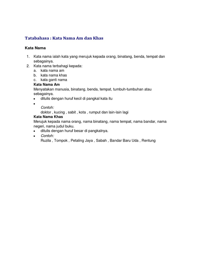 Kata nama terbahagi kepada dua jenis iaitu. Kata nama khas hidup b. Kata nama am merujuk kepada manusia haiwan benda tempat dan tumbuh tumbuhan secara umum kata nama am ditulis degan huruf kecil. Seputar amm dan khas dalam al qur an al am secara etimologi berarti merata yang umum sedangkan secara terminologi atau istilah muhammad adib saleh mendefinisikan bahwa al am adalah lafadz yang diciptakan untuk pengertian umum sesuai dengan pengertian tiap lafadz itu sendiri tanpa dibatasi dengan jumlah tertentu 1.