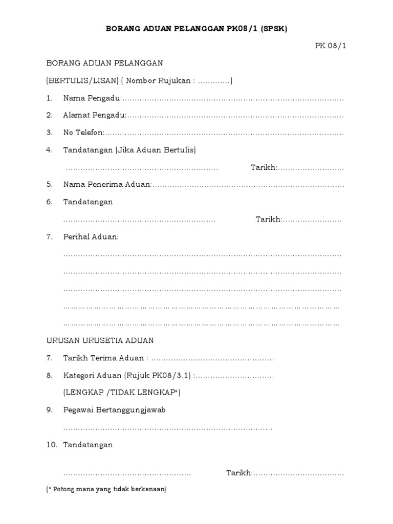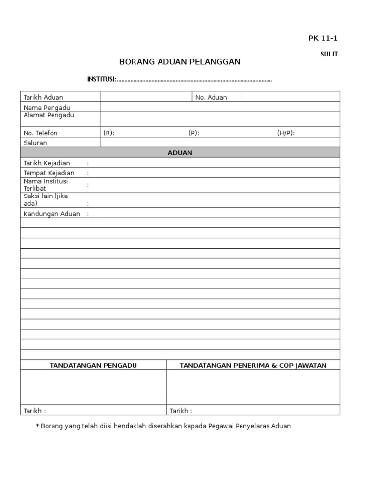Borang laporan aduan maklum balas pelanggan butir butir aduan tarikh terima aduan. Contoh borang aduan borang aduan pelanggan bertulis lisan. Borang aduan pelanggan butir butir pengadu nama pengadu no. Bila kita memilih produk dan terdapat kerusakan pada produk maka kita berhak untuk mengajukan komplain atau pengaduan kerusakan barang.
