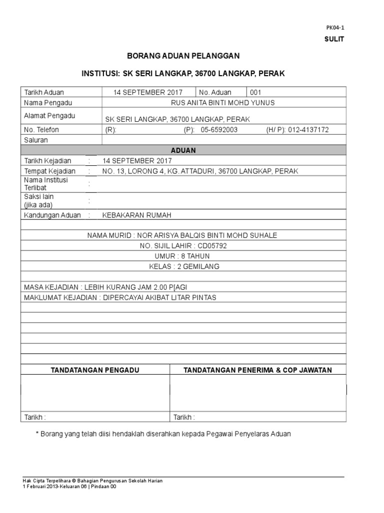 Kad pengenalan alamat no. Contoh laporan penyiasatan aduan pelanggan. Telefon maklumat aduan surat borang akhbar emel telefon website butir butir aduan. Buku pengurusan pra sekolah.