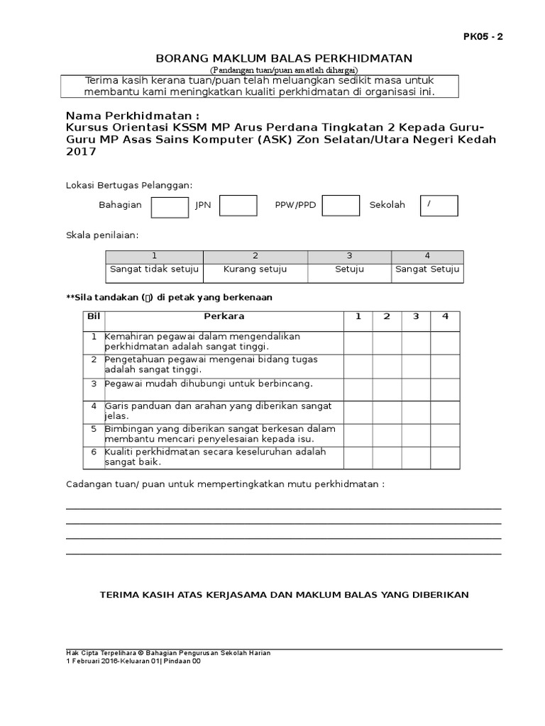 Please tick the box that best represent your opinion or experience by referring to the scale provided. Satu salinan ke dalam fail maklum balas pelanggan. 100 3 100 menganggap dokumen ini bermanfaat 3 suara 7k tayangan 9 halaman. Borang maklum balas pelanggan telah diterima dan diproses.