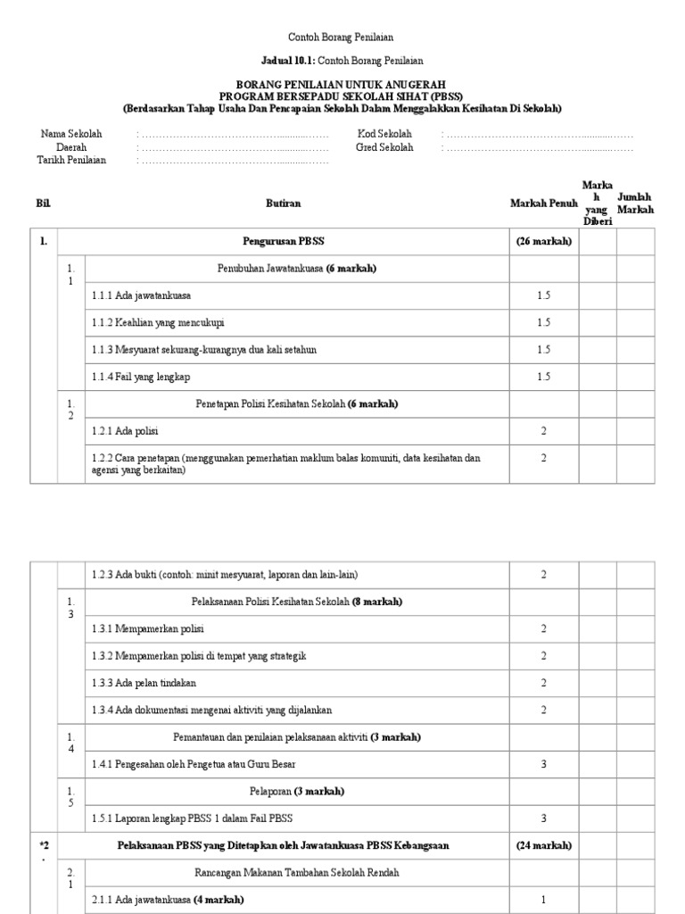 Contoh Borang Penilaian Program Sekolah