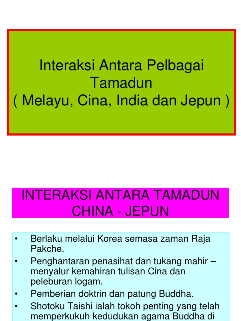 Namun apabila interaksi antara tamadun dibincangkan kita seringkali tertanya tanya apakah faktor yang mendorong kepada jalinan hubungan antara tamadun tamadun tersebut. Faktor faktor interaksi antara tamadun a. Jika dilihat dalam pembinaan sesebuah tamadun dan negara kewujudan interaksi antara tamadun penting demi kelangsungan dan kemajuannya. Apabila sumbangan sesuatu tamadun utama itu berjaya melepasi sempadan zamannya serta dapat pula diterima sebagai.