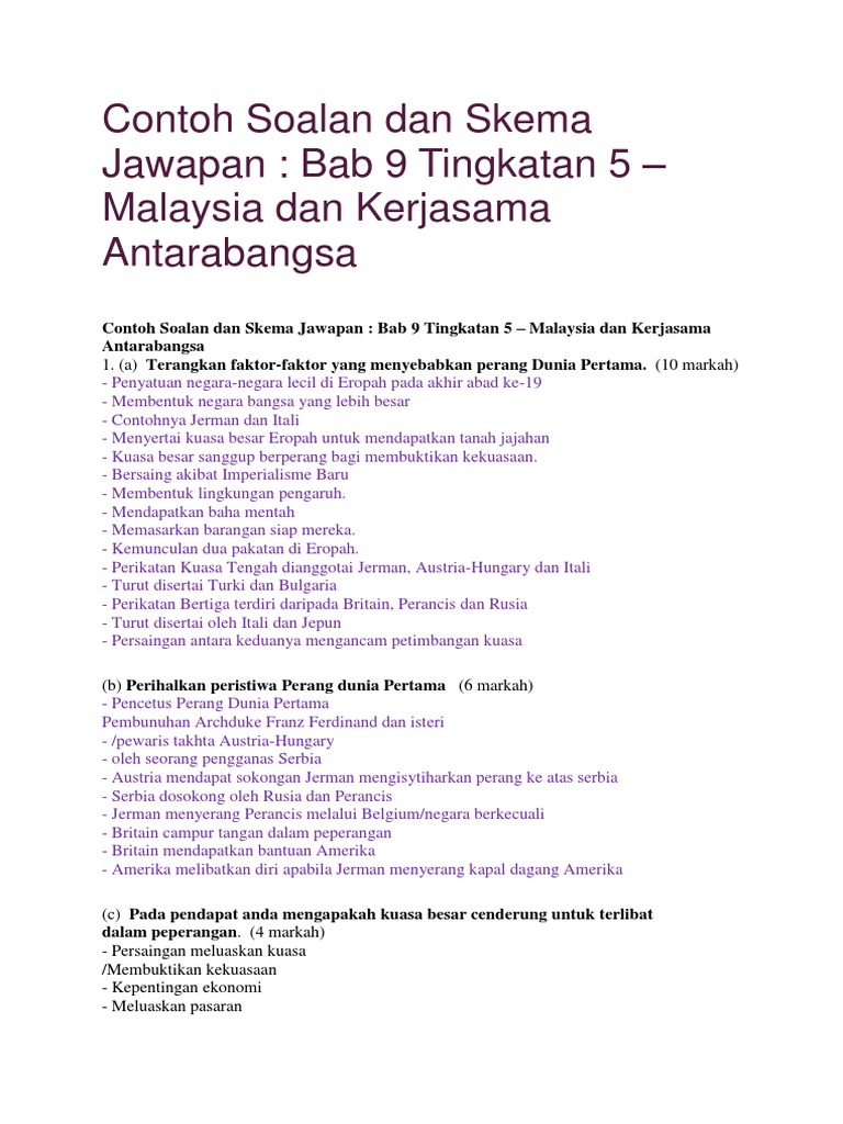Contoh jawapan sejarah kertas 3 bab 9 tingkatan 5. Berikut dikongsikan skema jawapan sejarah kertas 3 tingkatan 4 dan 5 setiap bab yang boleh dirujuk dan di muat turun dalam file pdf di bawah ini. Koleksi skema jawapan sejarah kertas 3 spm. Contoh rumusan kertas 3 spm. Malaysia dan kerjasama antarabangsa malaysia dalam kerjasama antarabangsa sejarah kertas 3 spm.