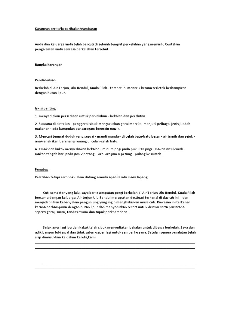 Contoh karangan berkelah di air terjun. Bagi mereka yang bercadang untuk kesini bolehlah tengok t. Berkelah di pantai karangan 10. 3 ibu memotong menyediakan banyak makanan seperti 4. Karangan jenis catatan soalan.