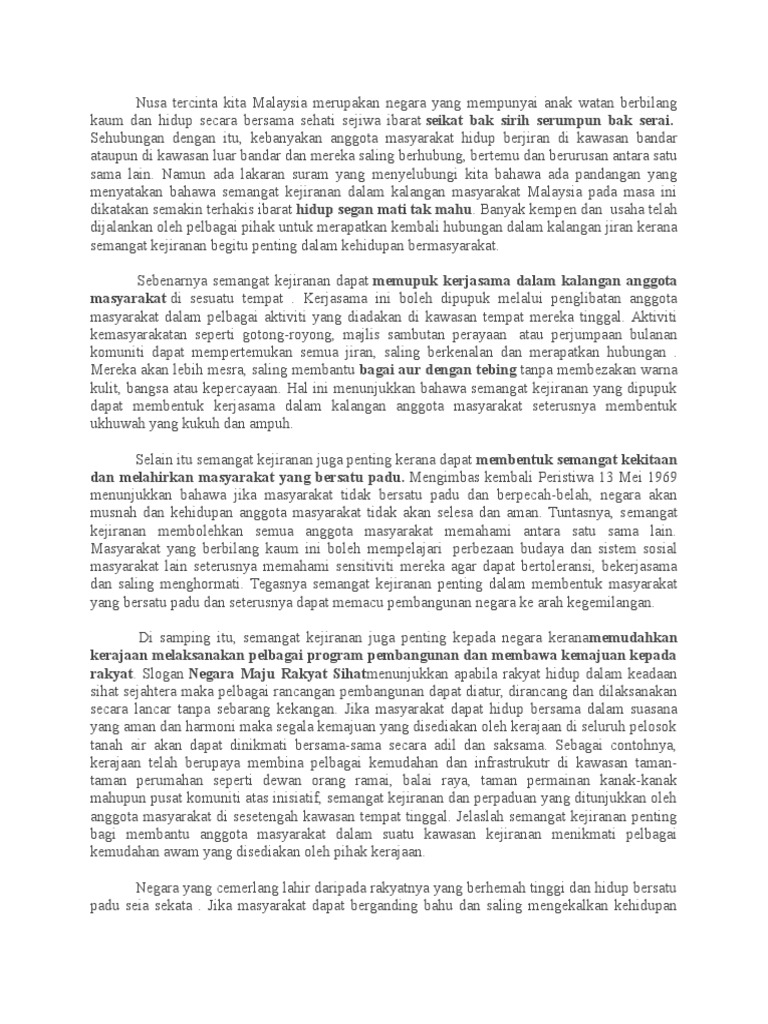 Nusa tercinta kita malaysia merupakan negara yang mempunyai anak watan berbilang kaum dan hidup secara bersama sehati sejiwa ibarat peribahasa seikat bak sirih serumpun bak serai. Contoh karangan kepentingan hidup berjiran. Semoga bermanfaat buat anda. Mengukuhkan semangat perpaduan dalam kalangan penduduk.
