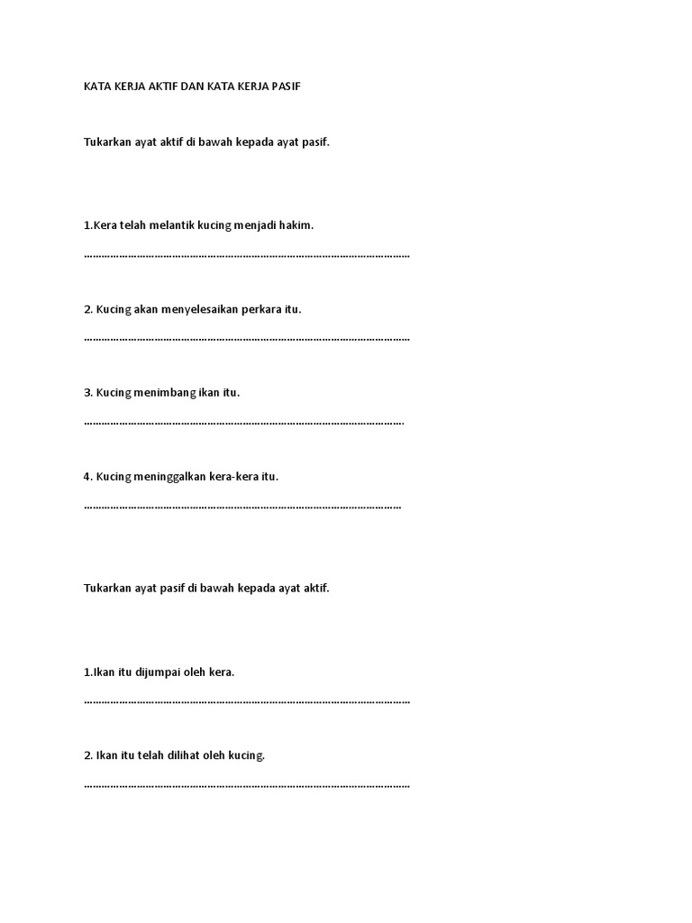Berikan contoh kata kerja aktif dan kata kerja pasif umumnya kata kerja aktif mendapat imbuhan me sedangkan kata kerja pasif mendapat imbuhan di. Memakai konjungsi waktu dan kausul contohnya jika bila sehingga sebelum pertama dan kemudian. Together with jakarta depok tangerang and bekasi the city is included in the jabodetabek metropolitan area bogor has been known as the rain city of indonesia and buitenzorg city. Ditulis dalam bentuk kalimat pasif.