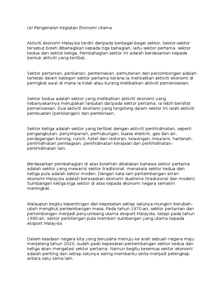 Contoh Konsep Dan Takrifan Kegiatan Ekonomi