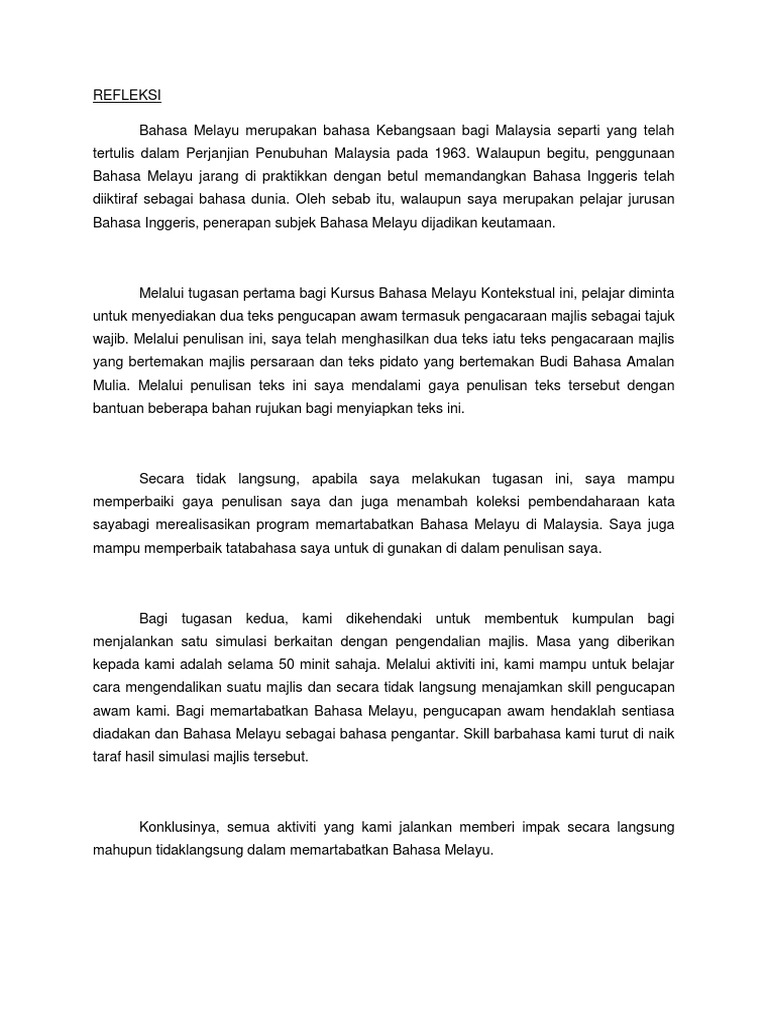 Contoh Refleksi Bahasa Melayu