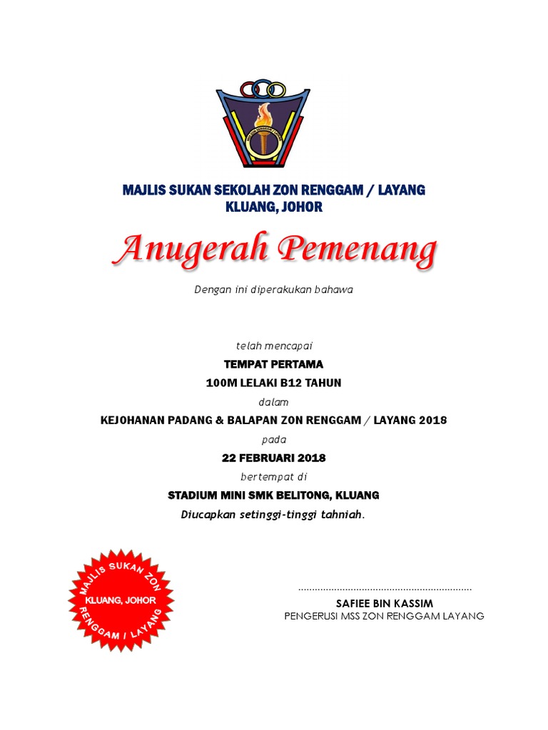 Contoh sijil pemenang pertandingan. Untuk makluman template sijil ini adalah berformat pptx microsoft power point. Pemenang sukan dan perlawanan bola sepak prasekolah. Adalah dengan ini diperakukan bahawa. Hasil penilaian dari masing masing juri ini nantinya akan direkap kemudian hasil akhirnya akan dirangking dan peserta dengan nilai tertinggi akan menjadi juaranya.
