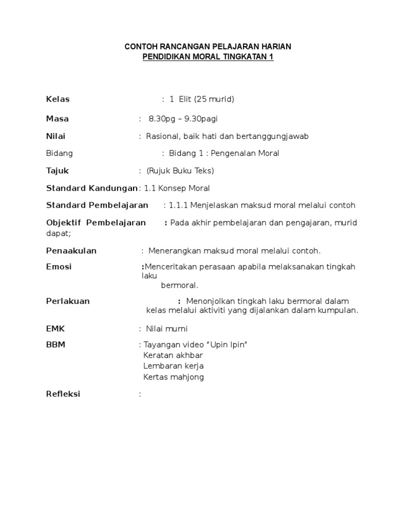 Contoh Tingkah Laku Bermoral Tingkatan 1