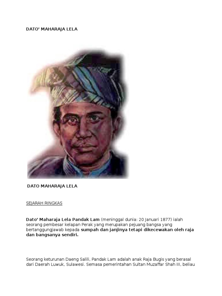Dato maharaja lela ialah pembesar kelapan perak yang merupakan pejuang bangsa yang bertanggungjawab kepada sumpah dan janjinya. Sebab sebab penentanagan 1. Contoh folio dato maharaja lela contoh ert. Perjuangan tokoh tempatan draft.
