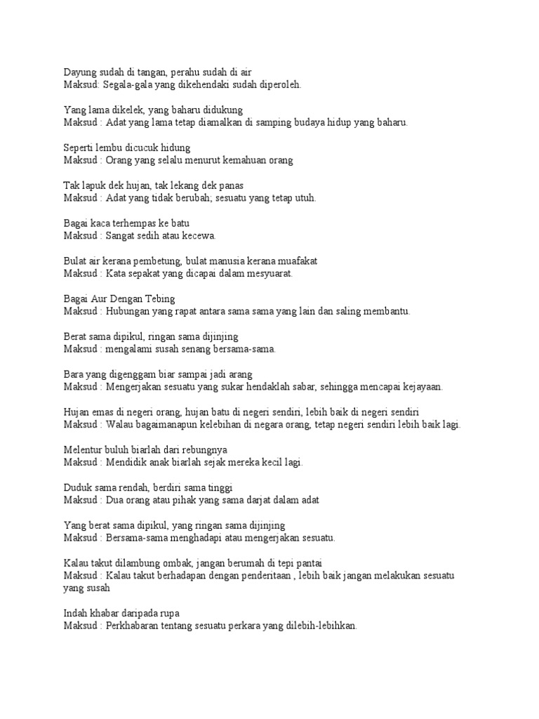 Seperti lembu dicucuk hidung maksud. Dayung sudah di tangan perahu sudah di air maksud. Yang lama dikelek yang baharu didukung maksud. Tak lapuk dek hujan tak lekang dek panas.