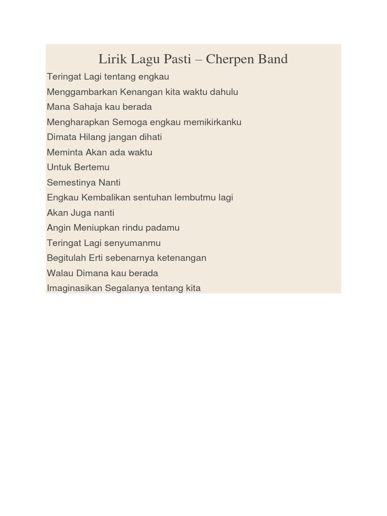 Dimata hilang jangan dihati meminta akan ada waktu untuk bertemu. Lirik lagu pasti cherpen band. Baca juga lirik lagu cinta ismail izzani. Walaupun berjauhan tempat tinggal tetapi selalu diingat dalam hati.