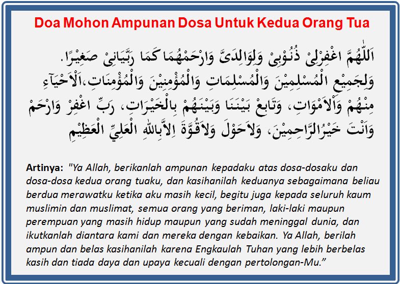 Keredaan allah bergantung kepada keredaan kedua ibu bapa. 2 keredaan ibu bapa ialah keredaan allah s w t. Doa untuk kedua orang tua lengkap kedua orang tua kita yaitu bapak dan ibu adalah orang yang paling berjasa dalam hidup kita mereka lah yang merawat kita sejak baru lahir hingga tumbuh dewasa tanpa meminta imbalan kepada kita. Doa untuk mak ayah dalam bahasa melayu.