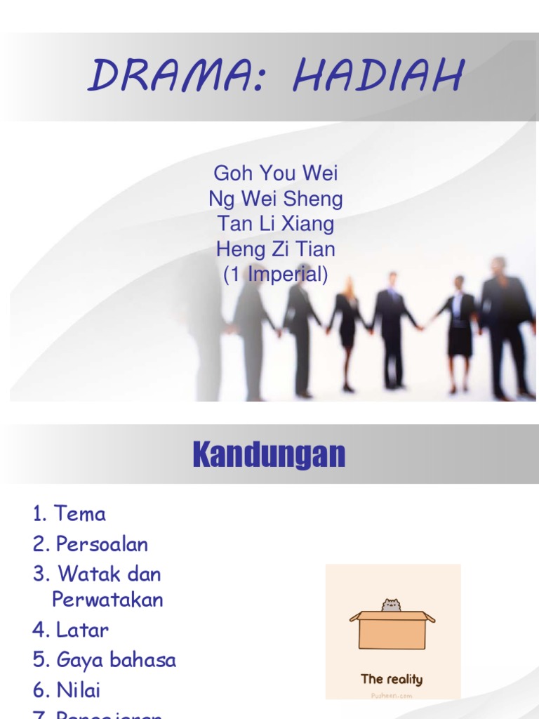 Drama hadiah tingkatan 1. Dia dan dua orang anaknya iaitu hayati dan farid terpaksa bergantung hidup dengan bapanya pak mail seorang pesara. Sinopsis pemikiran persoalan plot teknik penceritaan watak dan perwatakan latar masa latar tempat latar masyarakat gaya bahasa nilai pengajaran drama hadiah k bm tingkatan 1. 34 40 buku b v hadiah drama 8 ms created date. Hayati tidak dapat menjelaskan bayaran asrama lalu mengambil keputusan pulang ke kampung buat sementara waktu.