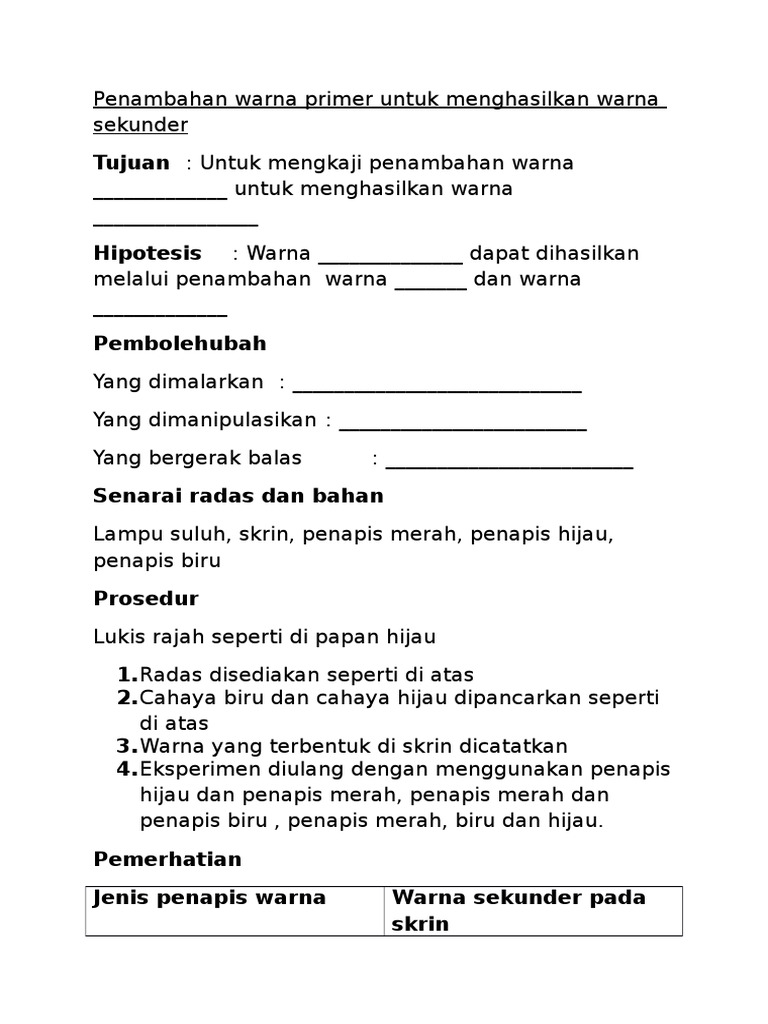 Eksperimen penambahan dan penolakan cahaya. Soalan 1 rajah menunjukkan penambahan tiga warna cahaya di atas skrin putih a menggunakan maklumat dalam jadual namakan p q dan r dalam rajah. Penambahan cahaya ialah percampuran cahaya warna prime bagi membentuk warna sekunder. Tulis jawapan anda dalam jadual di bawah. 13 13 penambahan cahaya 1.