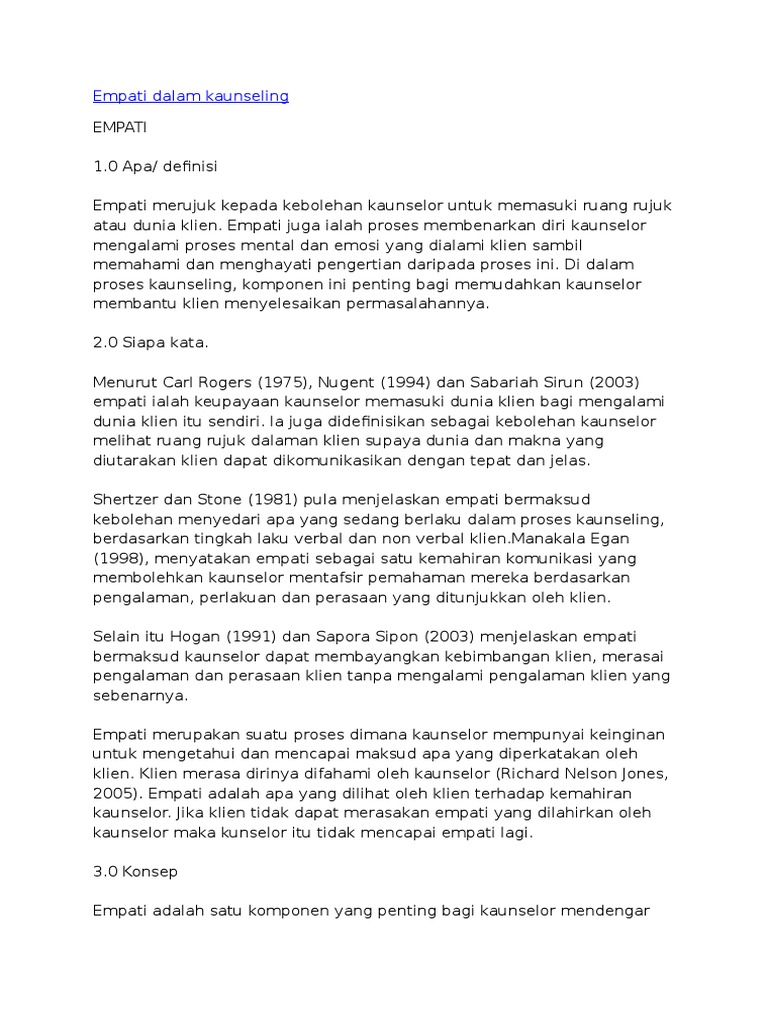 Empati dan simpati ini juga sama sama menggambarkan situasi sedih serta berkabung yang ditujukan kepada orang lain saat sedang mengalami musibah atau tragedi. Empati merupakan kelanjutan dari sikap simpati yaitu perbuatan nyata untuk mewujudkan rasa simpatinya itu. Tetapi bersikap terlalu berempati tidak seharusnya menjadi amalan pemimpin. Empati 1 0 apa definisi empati merujuk kepada kebolehan kaunselor untuk memasuki ruang rujuk atau dunia klien.