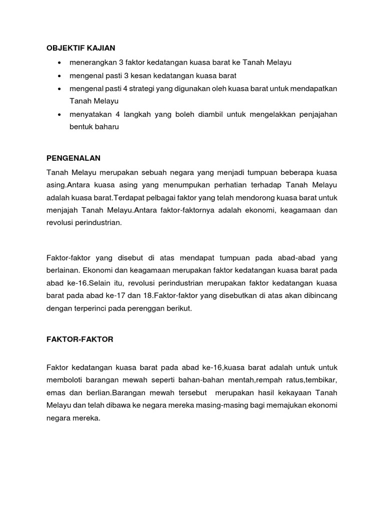 Faktor Kedatangan Kuasa Barat Ke Tanah Melayu Tingkatan 3 2019