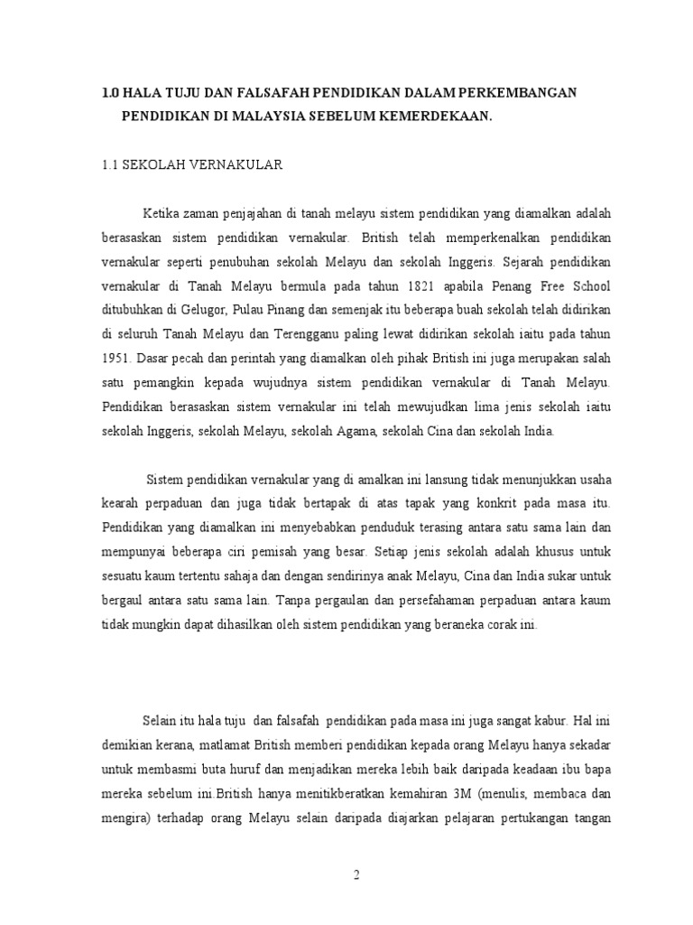 Hala tuju perkembangan pendidikan di malaysia ketika era penjajahan. Uploaded by sukri yusoff. Bahasa melayu sebagai bahasa pengantar namun bahasa inggeris sebagai bahasa antarabangsa tetap diiktiraf dan dijadikan bahasa kedua. 80 5 80 found this document useful 5 votes 5k views. Pendidikan di malaysia telah melalui saat suka dan duka serta sering berlaku perubahan demi perubahan untuk memartabatkan pendidikan di negara ini.