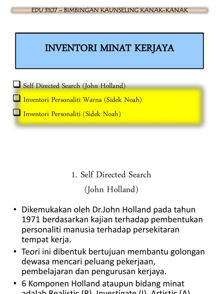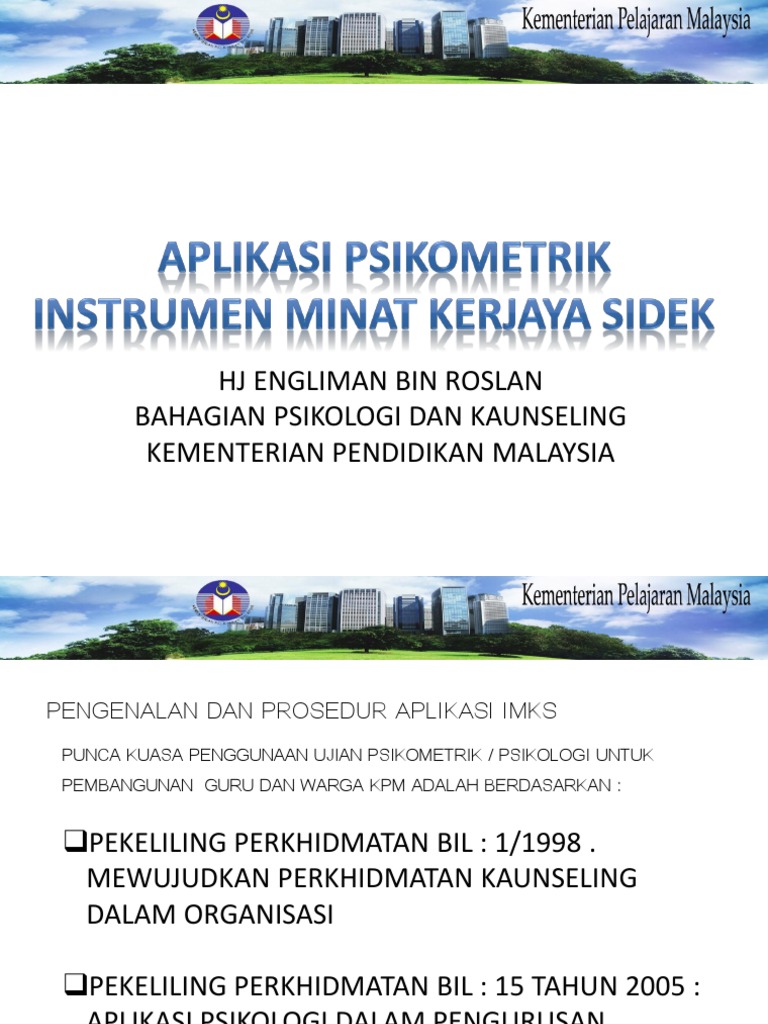 Inventori minat kerjaya by sidek mohd. 2010b dan inventori nilai pekerjaan sidek inps sidek mohd noah 2013b. 2010a inventori personaliti sidek ips sidek mohd noah 2013d. Iaitu inventori minat kerjaya sidek imks sidek mohd noah 2013c.