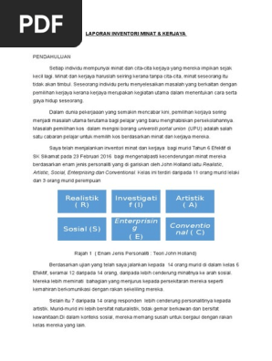Inventori minat kerjaya sidek. Inventori minat kerjaya satu set ujian psikologi yang dibina untuk mengukur 6 pola minat kerjaya iaitu realistik investigatif artistik sosial keusahawanan dan konvensional. Merupakan pelajar semester 4 daripada jurusan ismp bimbingan dan kaunseling daripada universiti pendidikan sultan idris upsi blog ini bertujuan untuk memberi pendedahan kepada orang ramai berkenaan dengan kaunseling kerjaya. Membantu individu memilih program pengajian yang sesuai. Professor founder of spt department of counselor education counseling psychology faculty of educational studies universiti putra malaysia tel.
