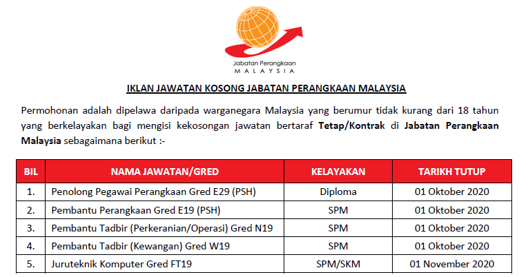 Permohonan ini terbuka kepada warganegara malaysia yang berumur 18 tahun dan keatas yang berkelayakan dalam bidang yang berkaitan untuk mengisi kekosongan jawatan di universiti teknologi malaysia. Spm svm skm jabatan perkhidmatan awam kekosongan. Jawatan kosong technician juruteknik. 30 kekosongan jawatan pelbagai negeri gaji ditawarkan.