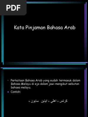 Berdasarkan sebutan bunyi bahasa melayu. Namun untuk sedikit panduan untuk anak anak yang dikasihi terutama yang akan menduduki spm pada 5 november ini saya ingin menyentuh beberapa perkataan kata pinjaman daripada bahasa arab untuk membanyakkan kosa kata yang boleh digunakan dalam penulisan anda. Kata pinjaman faktor peminjaman kata membentuk istilah istilah baru menepati kehendak pengisian masa keadaan perkembangan dalam perniagaan perdagangan faktor psikologi masyarakat penutur akan meminjam bahasa yang dianggap lebih tinggi tarafnya daripada bahasa ibunda sendiri. Latar belakang 1 1 sistem tulisan dan ejaan jawi yang digunakan sekarang ialah sistem yang termuat dalam buku pedoman ejaan jawi yang disempurnakan yang diterbitkan secara rasmi oleh dewan bahasa dan pustaka pada tahun 1986 edisi kedua 1987.
