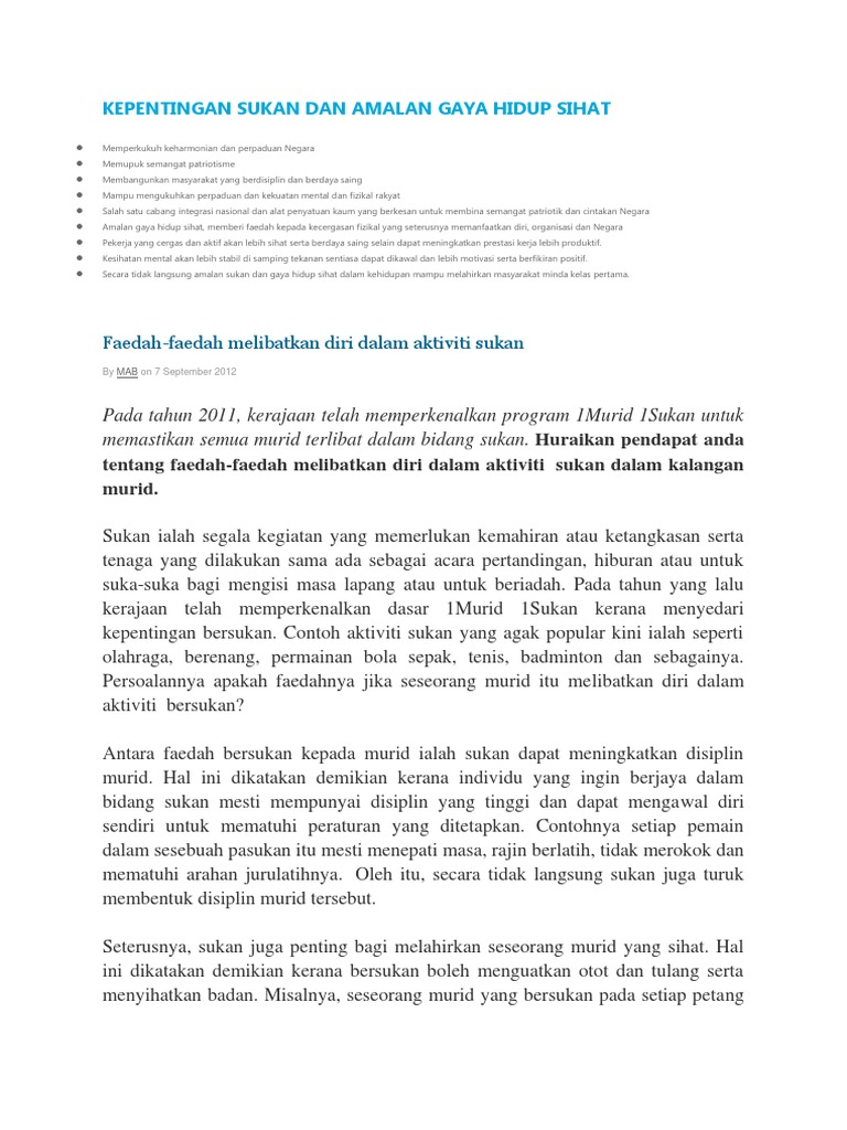Jelaskan tentang sukan untuk perpaduan. Kalau saya tengokkan dari contoh masa saya muda lagi dan hari ini kita boleh nampak ada pelbagai kaum yang datang bukan saja untuk bermain. Contoh karangan sukan ke arah perpaduan pt3. F1 berperanan sebagai alat perpaduan tanpa mengira ideologi.