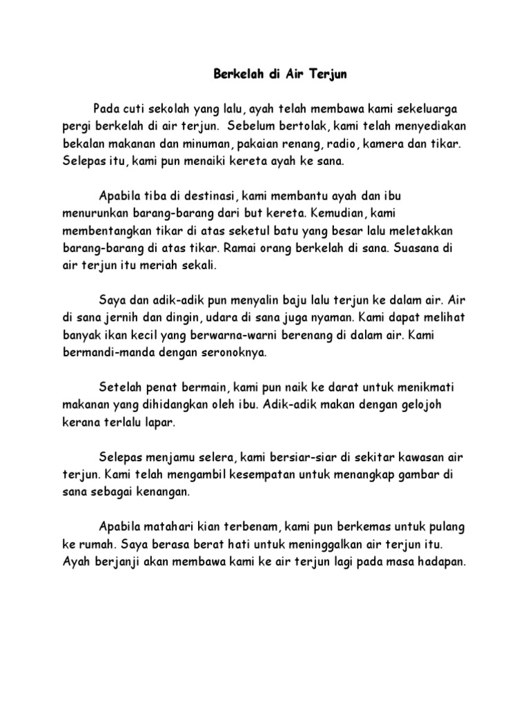 Berkelah di pantai karangan 10. Akhirnya kami pergi berkelah di air terjun chamang. Kawan sejalan sman 1 g putri 8 years ago internet marketing super system. Berkelah di tepi air terjun isi isi penting by selena 141122 in types creative writing.