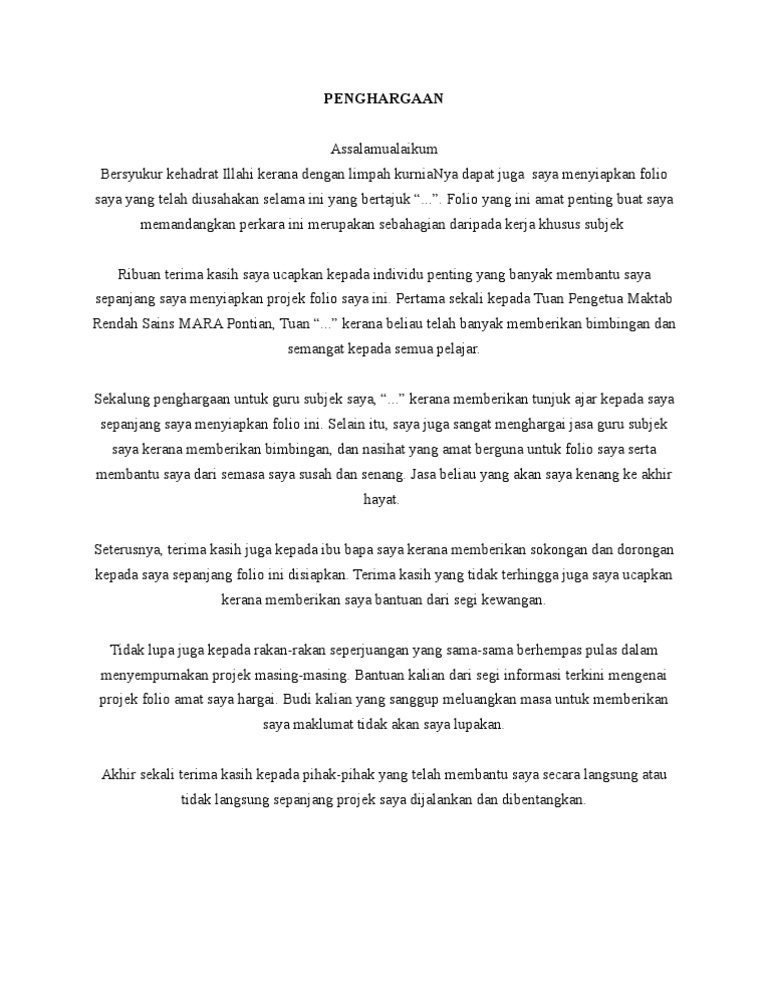 Kata kata penghargaan untuk folio. Kata kata penghargaan untuk assignment on. Setinggi tinggi penghargaan dan ucapan terima kasih ini juga saya ucapkan kepada puan encik. Ucapan penghargaan terima kasih alhamdulillah bersyukur ke hadrat ilahi kerana dengan limpah kurnia nya saya berjaya menempuhi alam pengajian universiti selama 3 tahun ini. Seterusnya terima kasih juga kepada ibu bapa saya kerana memberikan sokongan dan dorongan kepada saya sepanjang folio ini disiapkan.