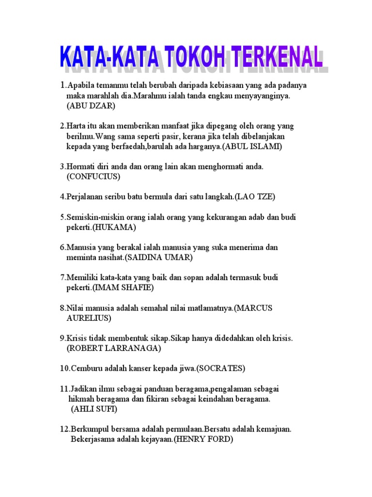 Kata kata tokoh pendidikan malaysia. Tokoh tokoh dunia adalah orang orang yang terpandang dan terkenal dimana mereka sudah terlihat sukses dan kaya. Jadi tidak ada salahnya kalau kamu membaca kata kata bijak pendidikan. Mutiara kata tokoh negeri kita ini unik tidak ada isme yang boleh diimport dari luar negeri. Last modified tuesday 20 october 2020 14 18 05.