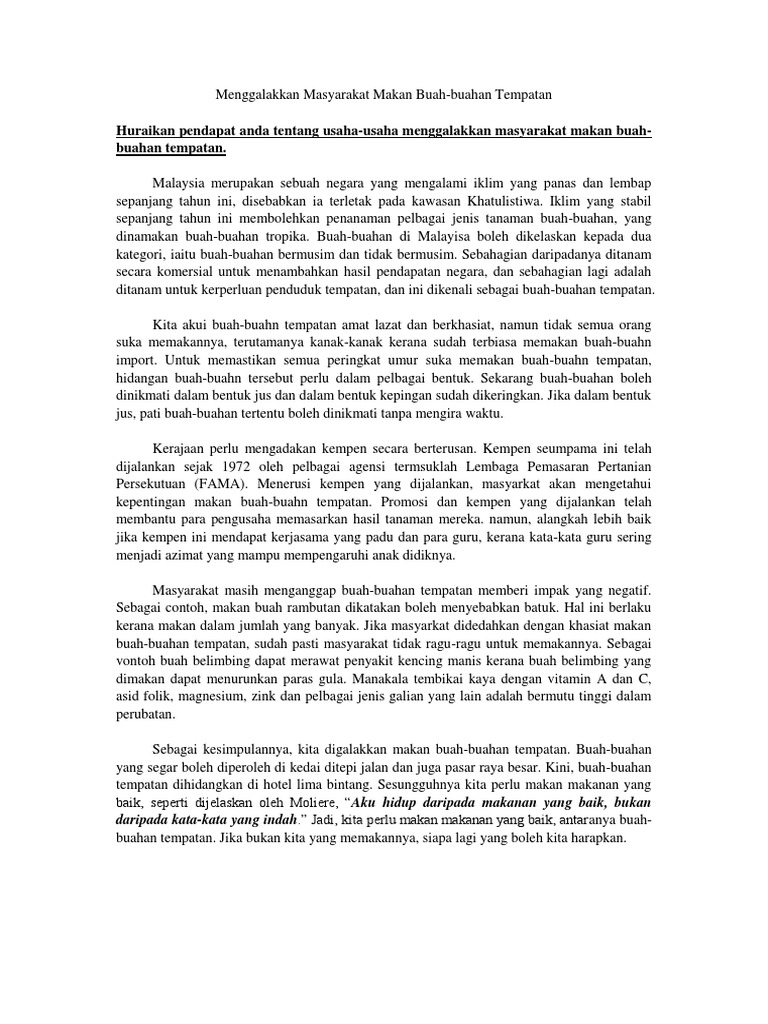 Hal ini demikian kerana buah buahan tempatan lebih berkualiti dan membawa banyak kebaikan terhadap kita berbanding dengan buah buahan eksport yang mahal.