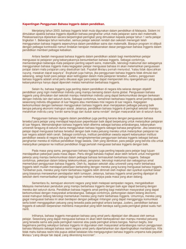 Bahasa global ini digunakan dengan meluas dan perlu dikuasai terutama golongan pelajar yang akan meneroka bidang ilmu dalam bidang pendidikan seterusnya diaplikasi dalam dunia pekerjaan. Penguasaan bahasa inggeris dalam kalangan pelajar tahun satu di ukm 29 the command of the english language among first year undergraduate students in ukm abstract the command of the english language is undoubtedly important in malaysia even though malay language is the countrys national language. Kepentingan kajian kegagalan penguasaan bahasa inggeris dalam kalangan pelajar adalah suatu perkara yang mengecewakan banyak pihak. Sekalipun pengajaran pembelajaran matematik dan sains ppsmi tidak lagi.